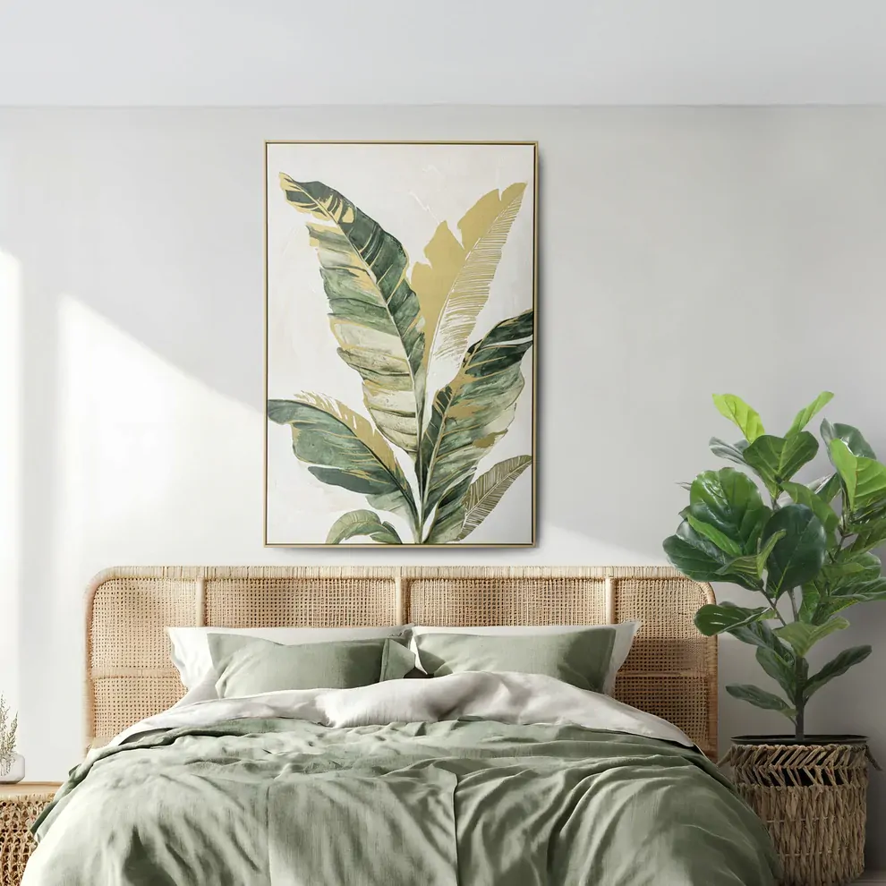 Urban Style Brushmarks Embellished Canvas Banana Palm Green 825x35x1225mm ARTHPP