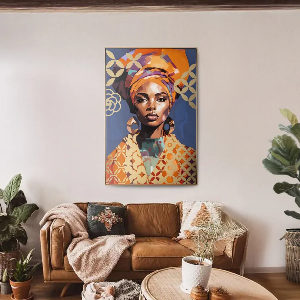 This striking artwork captures the beauty and confidence of African womanhood through bold, expressive brushstrokes and powerful composition. Her poised, calm expression exudes elegance and resilience, making it a captivating focal point for any room. The artwork celebrates cultural pride and individuality, inviting viewers to embrace its rich storytelling.
