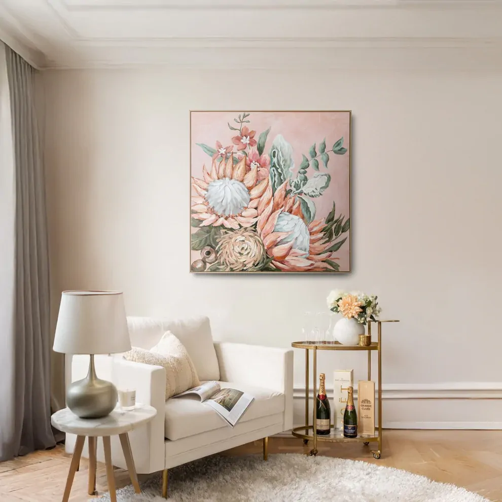 This Brushmarks Protea Canvas print has been skillfully hand embellished with quality oil paints to highlight the magnificent flowers and leaves of this plant. Originally native to both Australia and to South Africa this plant is now commercially cultivated in other parts of the world due to its striking beauty. Why not have this Protea wall art hanging on your wall so you can see it flower all year round.