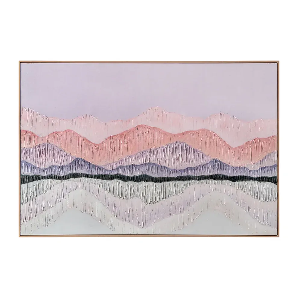 Introducing the Urban Style Brushmarks Oil Painting, featuring a hand painted canvas on a sturdy timber support frame. The 3D textured oil painting adds depth and dimension to the pink landscape perfectly. The wood look plastic décor box frame is expertly fitted around the stretch canvas painting to further add a level of depth and complexity to your art piece. Elevate your space with this unique and expertly crafted piece.