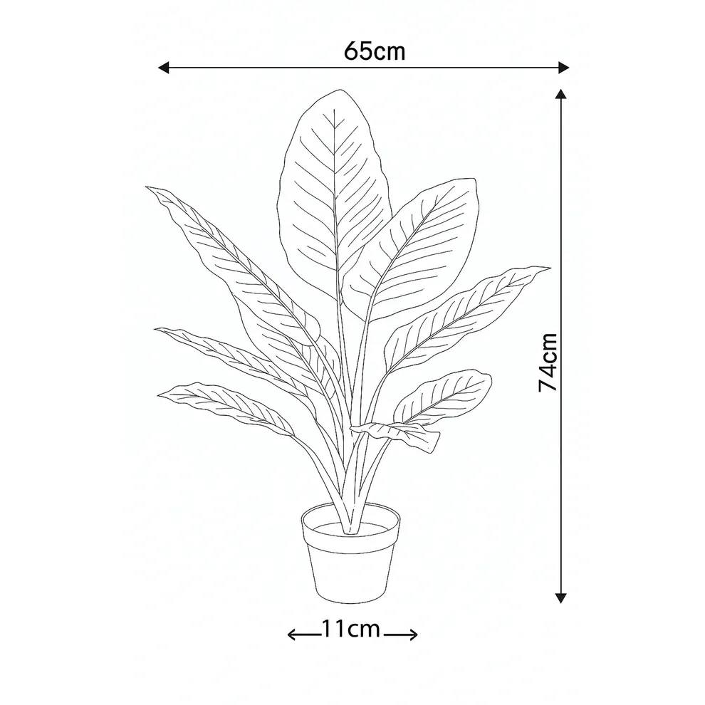 At 65cm wide and 74cm high, this generously proportioned faux plant is the perfect statement piece for interiors that need a touch of greenery. The durable construction and compact black pot ensure lasting beauty in living rooms, offices, entryways, and more.