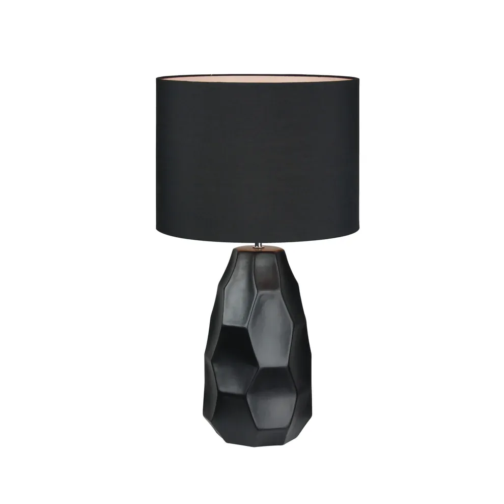 Elevate your living space with the sophisticated silhouette of the Jane Table Lamp from Urban Style. Featuring a bold black ceramic base with a sculptural, faceted design and paired with a matching fabric drum shade, Jane is the ideal statement piece for modern interiors.