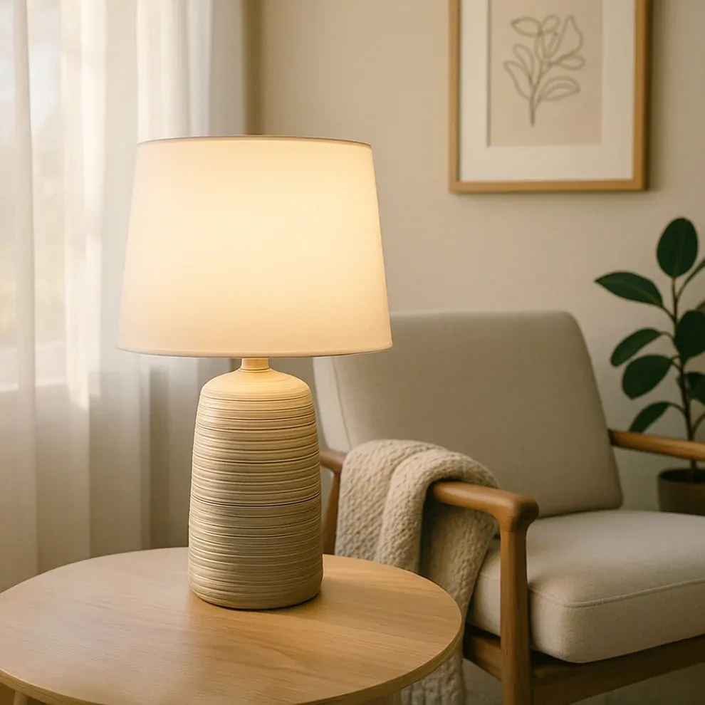 Bring warmth and subtle sophistication into your home with the Keira Table Lamp from Urban Style. With its gently textured ceramic base in a creamy neutral tone and paired with a matching fabric shade, Keira adds a serene glow to bedrooms, lounges, and reading corners.