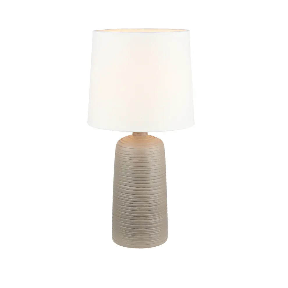 Bring warmth and subtle sophistication into your home with the Keira Table Lamp from Urban Style. With its gently textured ceramic base in a taupe earthy tone and paired with a matching fabric shade, Keira adds a serene glow to bedrooms, lounges, and reading corners.