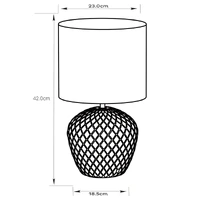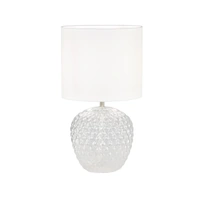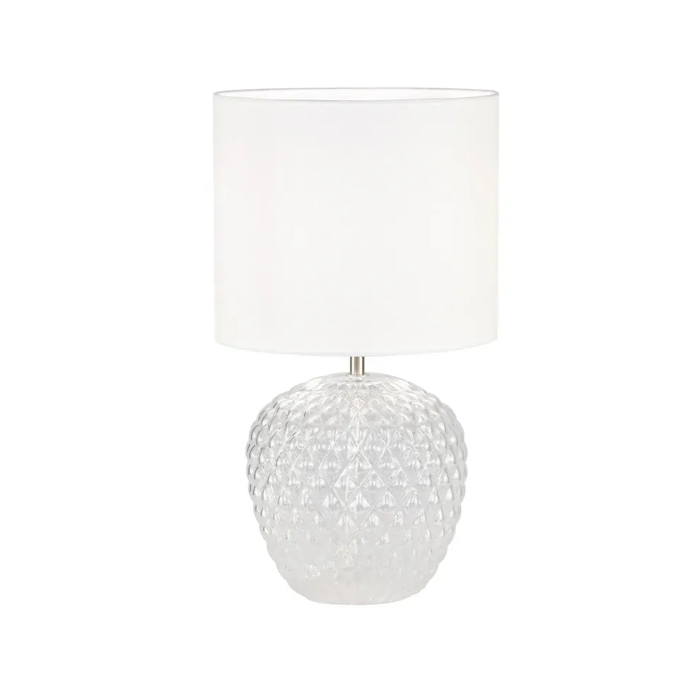 The Annie desktop lamp by Urban Style brings together graceful form and timeless texture. Its softly rounded glass base, styled in a raised diamond pattern, evokes hand-crafted artistry, while the neutral grey palette and fabric shade offer a calming and elegant light.