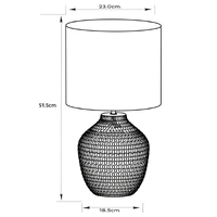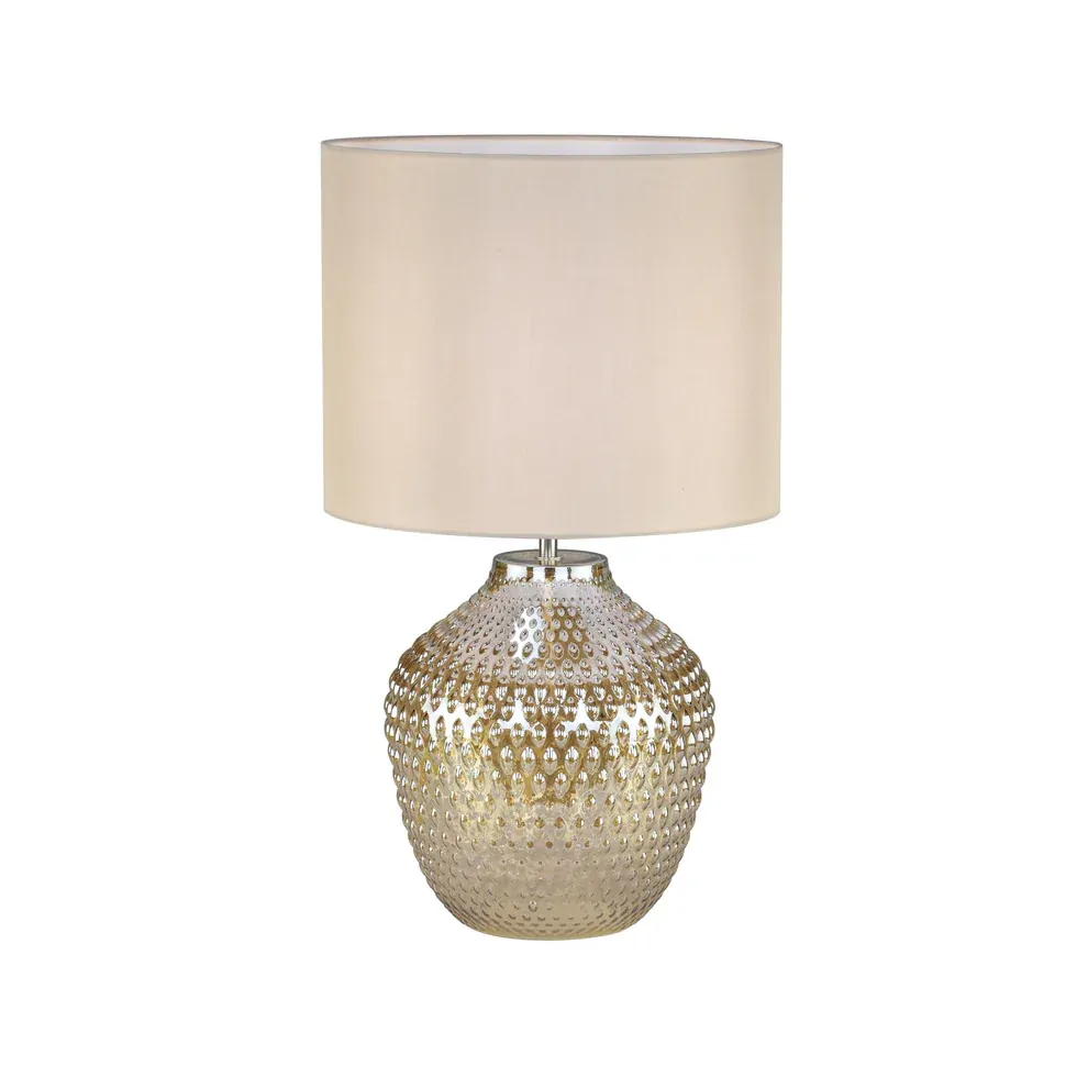 Elevate your bedroom or study with the understated elegance of the Cassie Desktop Lamp from Urban Style. Designed to blend soft lighting with contemporary character, the Cassie features a unique, textured glass base in a cool cream tone, topped with a neutral fabric shade for a calming glow.