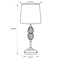 The Edith Bedside Lamp by Urban Style brings soft sophistication to your nightstand or reading corner. Crafted with a gleaming brushed metal base and detailed glass sphere accents, its timeless silhouette is beautifully complemented by a pleated fabric shade that diffuses a gentle, warm glow.