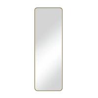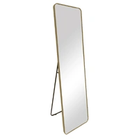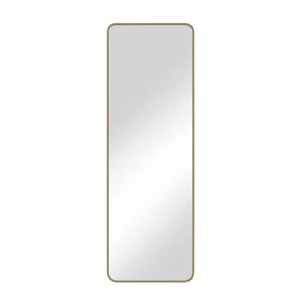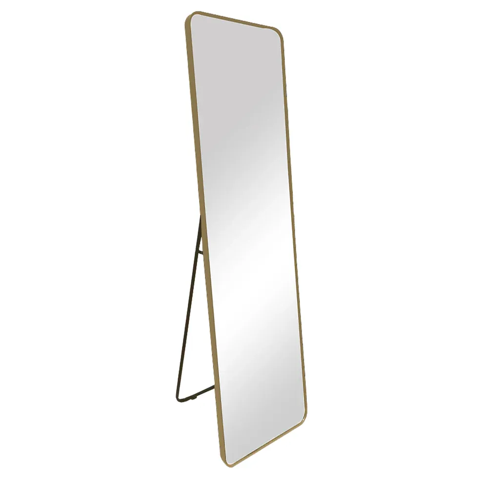 Minimal elegance meets modern styling in the Reflections Free Standing Mirror in Gold from Urban Style. With its soft curved corner silhouette and gold frame, this timeless design and free standing functionality fits effortlessly into any room—creating a calm, open feel while elevating your décor.
