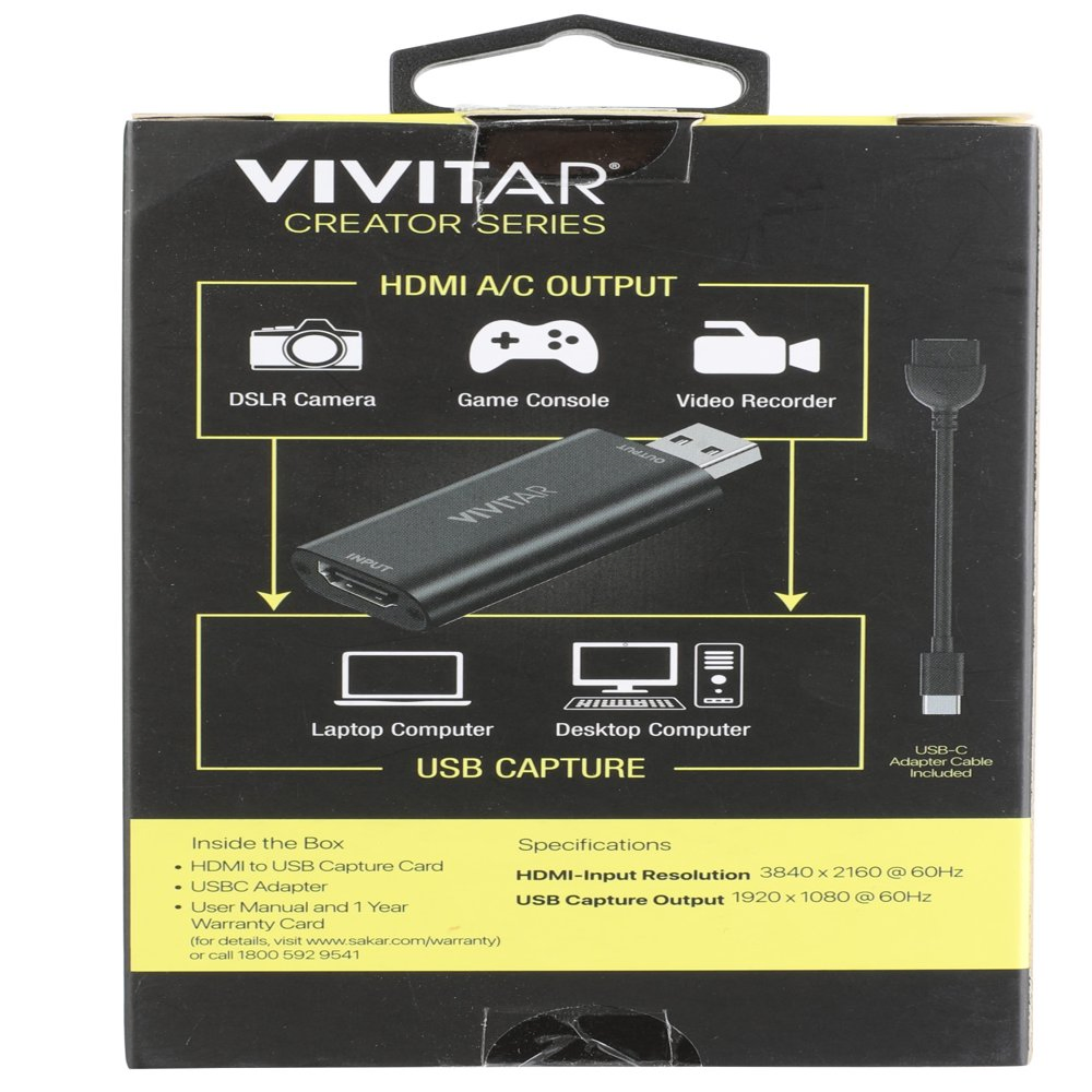Vivitar VIVRW7310 HDMI to USB Capture Card is plug and play to easily connect your device also stream videos to laptop or desktop computers. Audio capture for next-level live streaming, online class teaching, vlogging as well as video conferencing. advanced transmission technology and low latency card can stream your Full HD video and audio directly to a laptop or desktop computer.