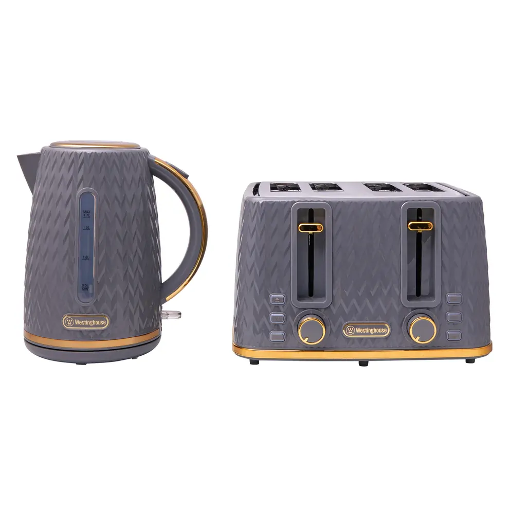 This Kettle and Toaster pack seamlessly combines style and functionality and is the perfect addition for your kitchen. It includes a 1.7L kettle and a 4 slice toaster, both of which are adorned with elegant gold-coloured accents and a chic zig-zag pattern that will instantly elevate the aesthetic of your kitchen.